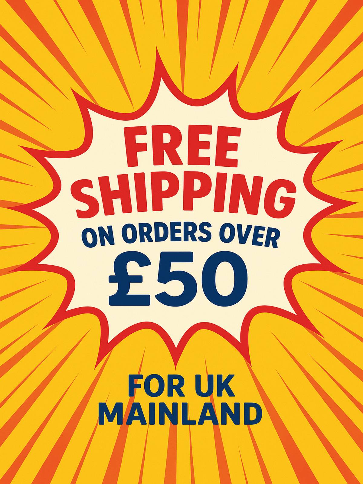 Standard 24hr-48hr (not guaranteed) shipping charge £6.00. Free Shipping on orders over £50.00, only to UK mainland postcodes, certain postcodes are excluded from this but the checkout process will calculate it for you.